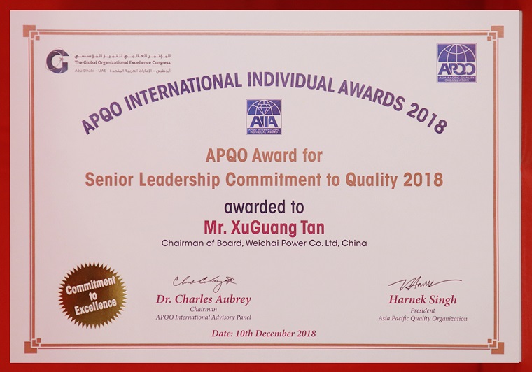 日前,第24屆亞太質(zhì)量組織國際大會在阿聯(lián)酋首都阿布扎比舉行。會上,譚旭光榮膺“2018亞太質(zhì)量獎個人獎—卓越誠信企業(yè)領袖”,濰柴動力榮獲“2018全球卓越績效獎——世界級”。