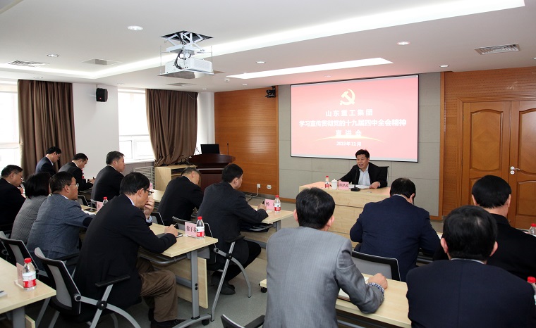 根據(jù)國資委統(tǒng)一安排部署,11月29日下午,省國資委黨委委員、副主任邵澤武同志到山東重工集團(tuán)總部,為廣大黨員干部宣講黨的十九屆四中全會精神。
